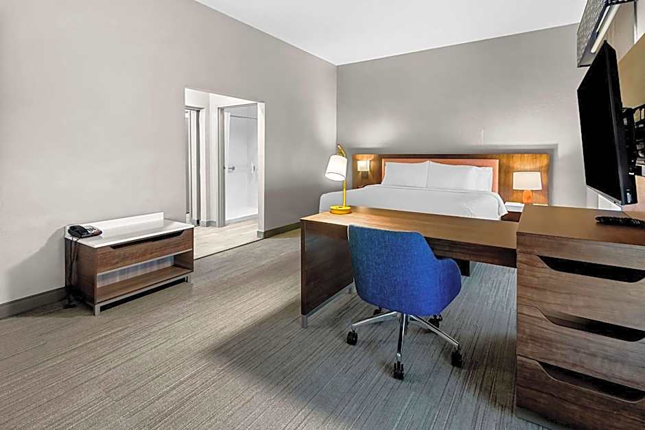 Sofa bed, 32-inch LCD TV, work area, free WiFi, tea/coffeemaker Have a relaxing stay in this king room that features our clean and fresh Hampton bed®. Unwind on a plush sofa bed and watch your favorite show on the 32-inch LCD TV. Enjoy a delicious hot drink from the in-room tea/coffeemaker. The room includes a spacious work desk and free WiFi to let you catch up on work while traveling. In the bathroom you'll enjoy fluffy towels, a WaterPik® showerhead and curved shower rod for added space and light.